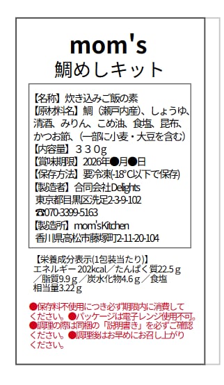 mom'sの幼児食で人気の「鯛めし」をご家族みなさまでお楽しみいただける